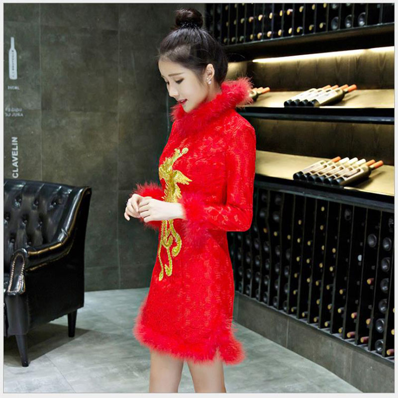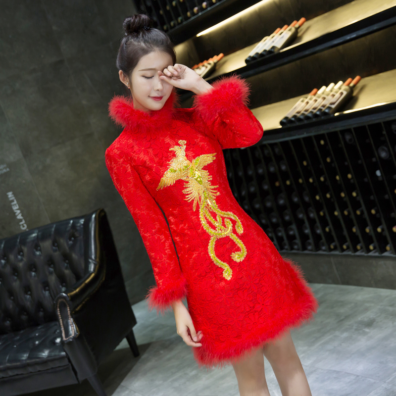 敬酒服新娘結(jié)婚禮服棉服棉衣訂婚回門服冬季短款修身加厚復古旗袍