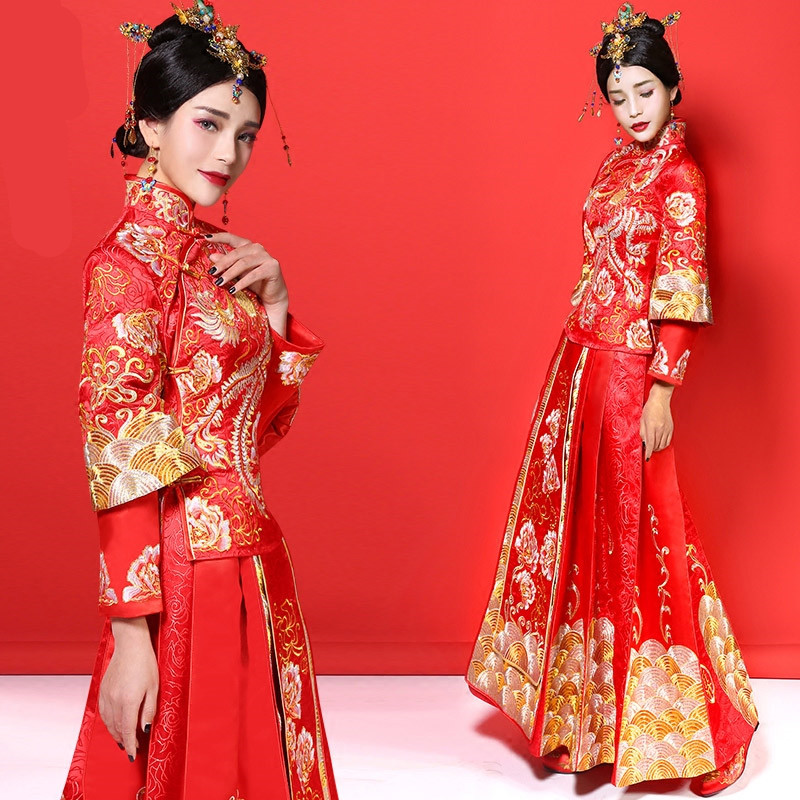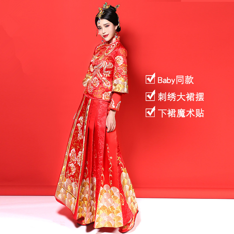 • baby同款秀禾服中式新娘2017新款季結(jié)婚嫁衣敬酒服龍鳳褂