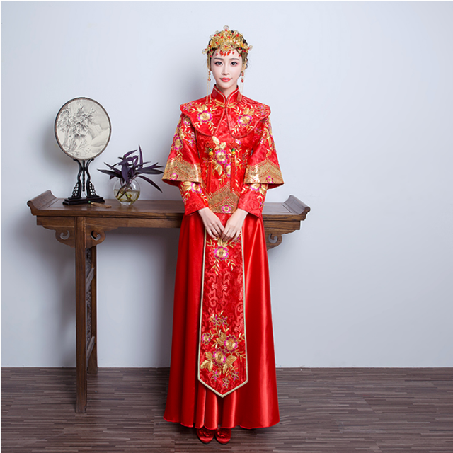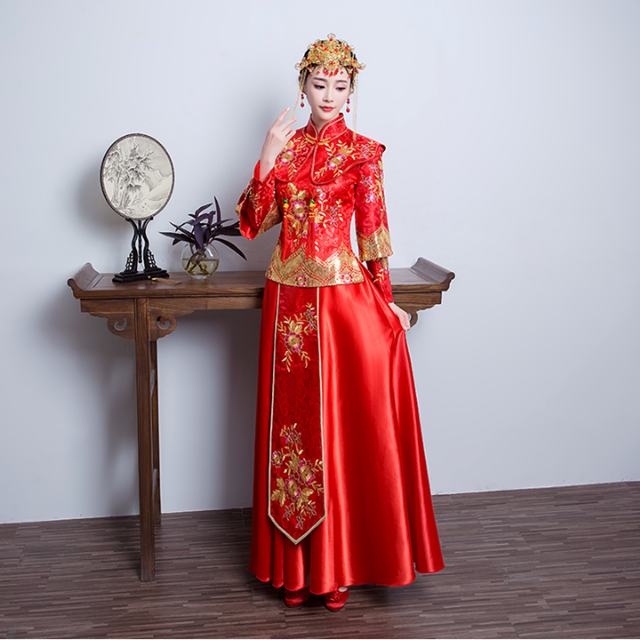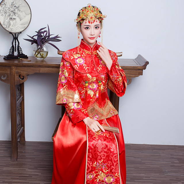 2017新款秋冬復(fù)古中式婚紗禮服敬酒服旗袍秀禾服新娘禮服嫁衣