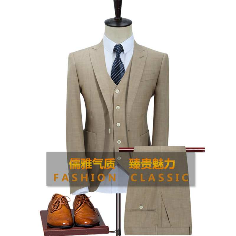 2017外貿男士潮流修身西服套裝男生商務格紋西裝三件套561
