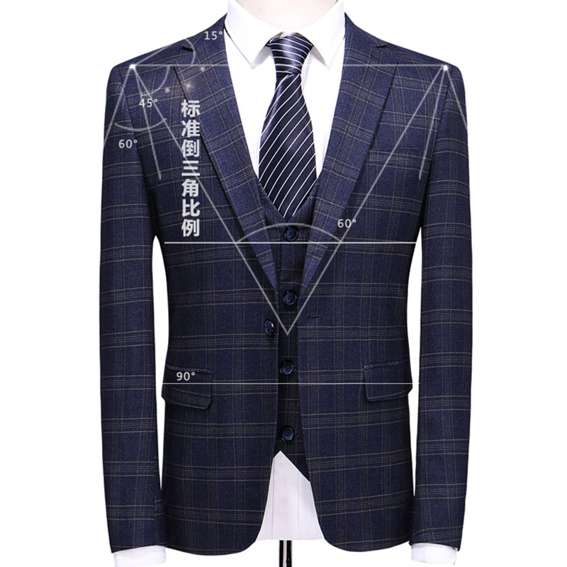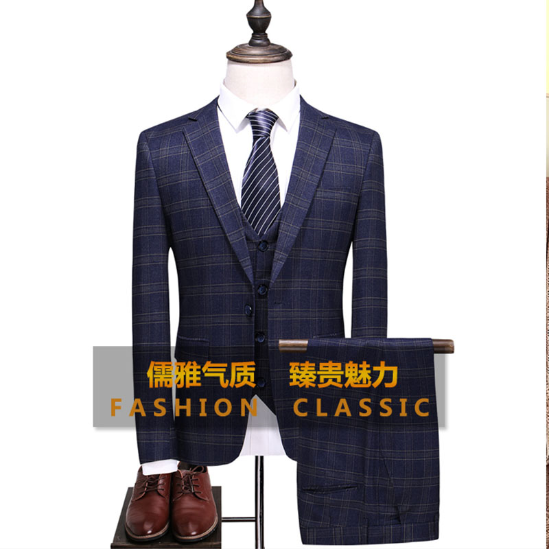 • 2017外貿男士潮流修身西服套裝男生商務格紋西裝三件套561