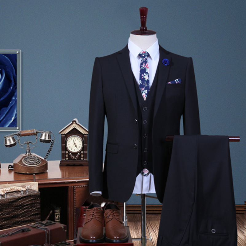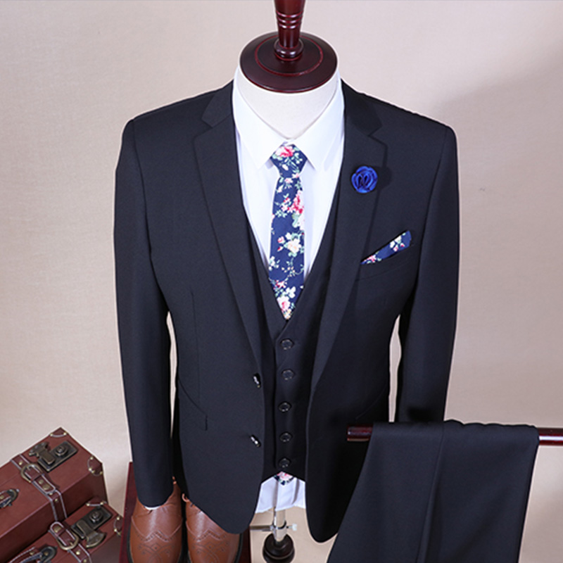 • 男士西服三件套韓版西裝套裝男修身款職業(yè)正裝新郎伴郎結婚912