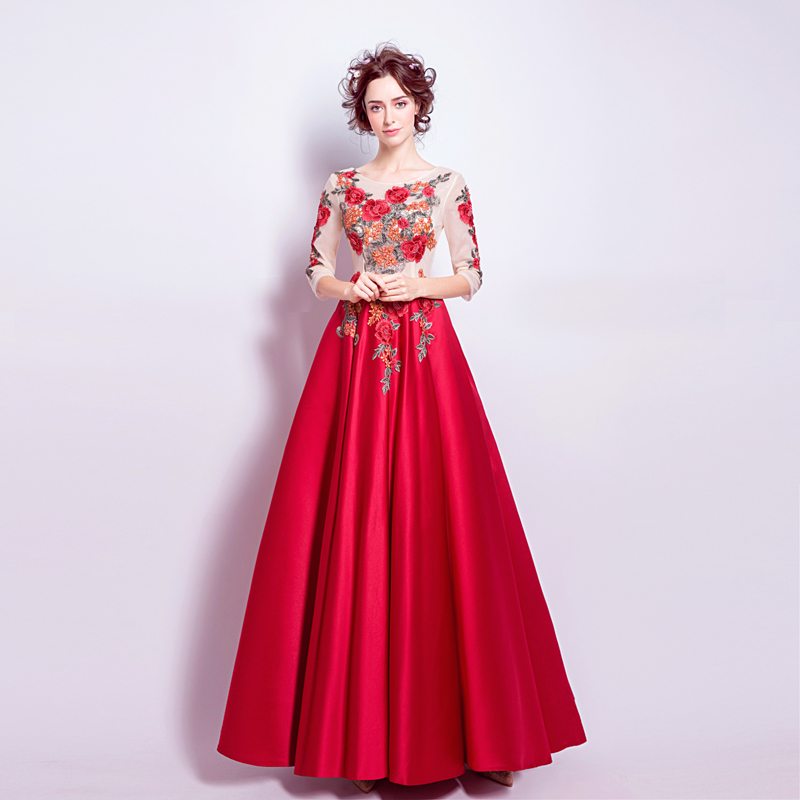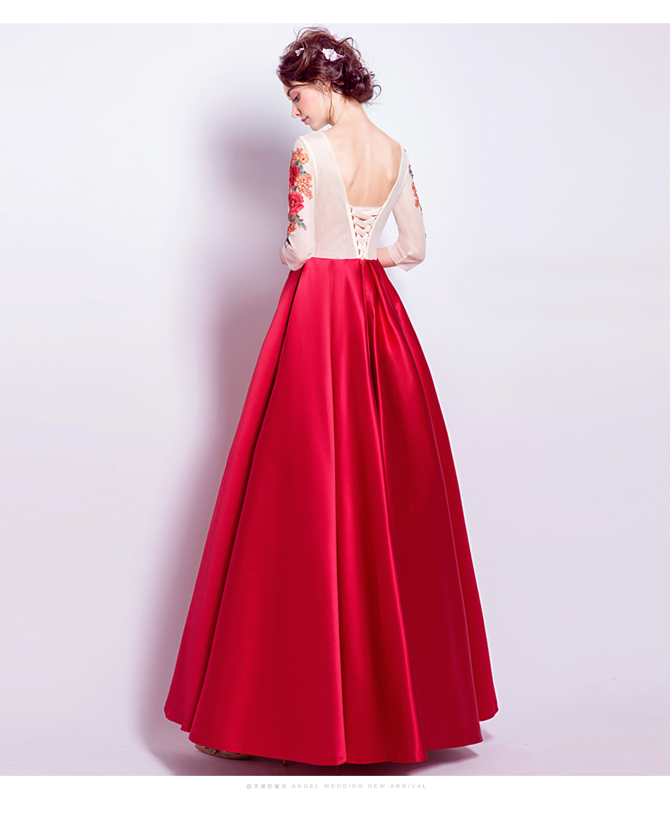 紅色長袖新娘結(jié)婚敬酒服婚禮晚宴年會婚紗禮服2016冬季新款