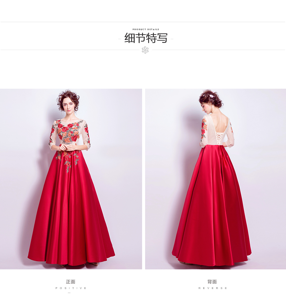 • 紅色長袖新娘結(jié)婚敬酒服婚禮晚宴年會婚紗禮服2016冬季新款