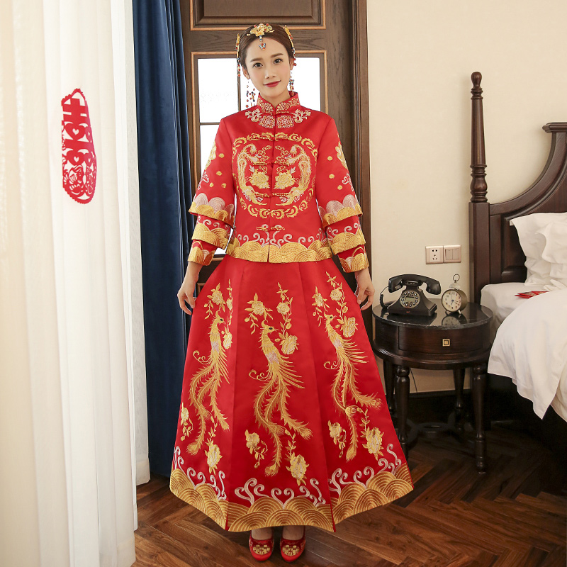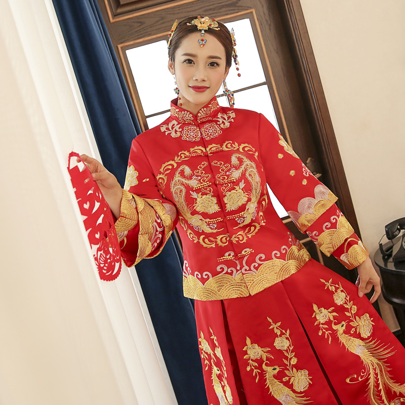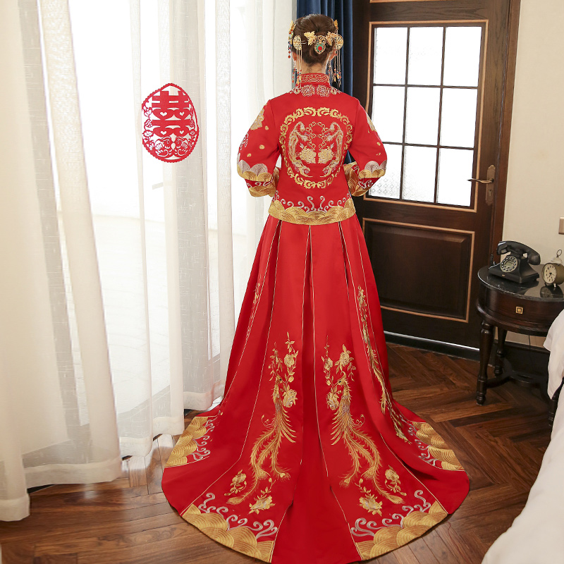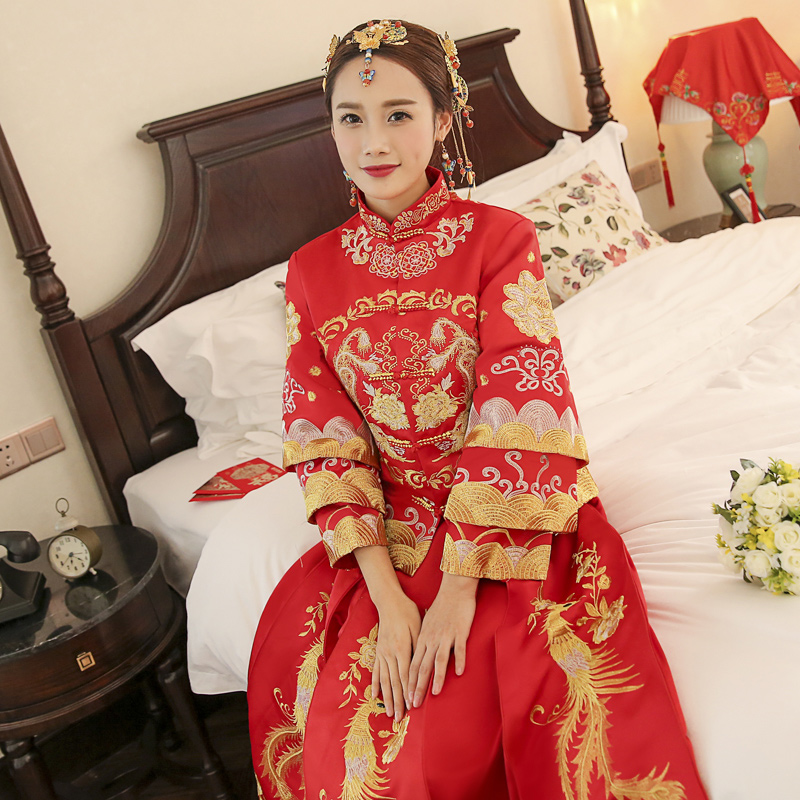 • 秀禾服2016新款中式禮服 結(jié)婚嫁衣拖尾龍鳳褂