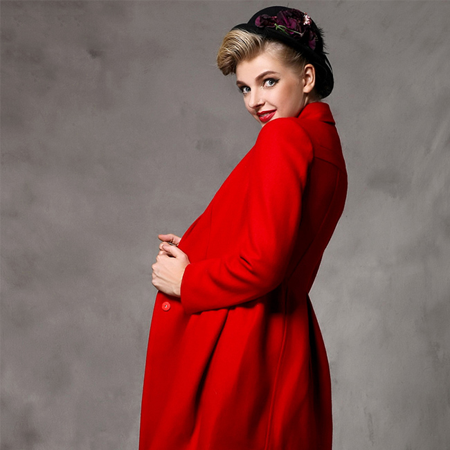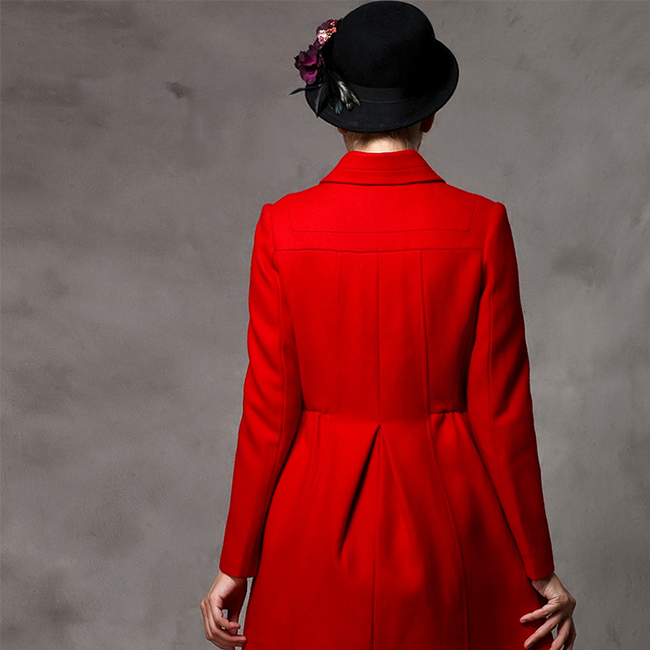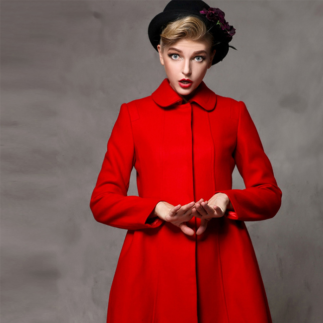 • 黑色毛呢大衣修身新娘歐美中長(zhǎng)款冬裝女紅色呢子厚毛羊外套