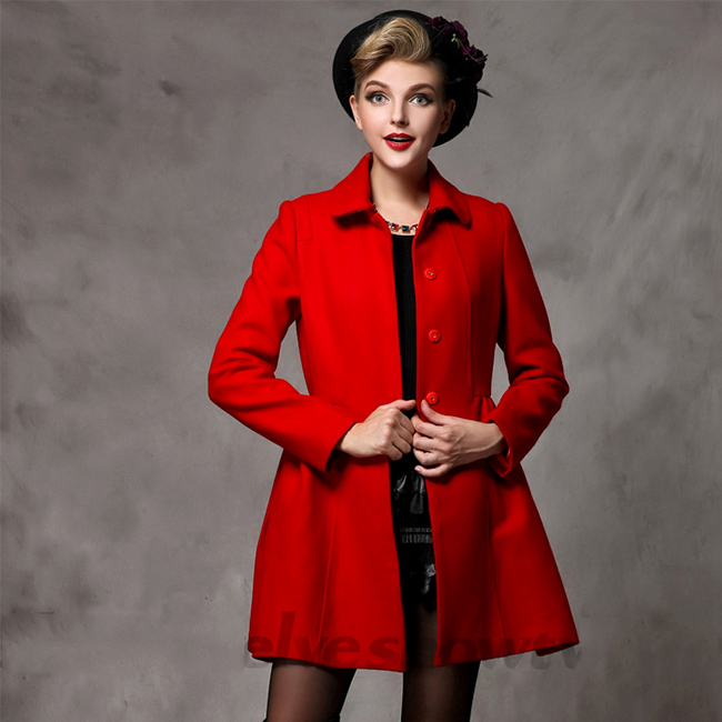 黑色毛呢大衣修身新娘歐美中長(zhǎng)款冬裝女紅色呢子厚毛羊外套
