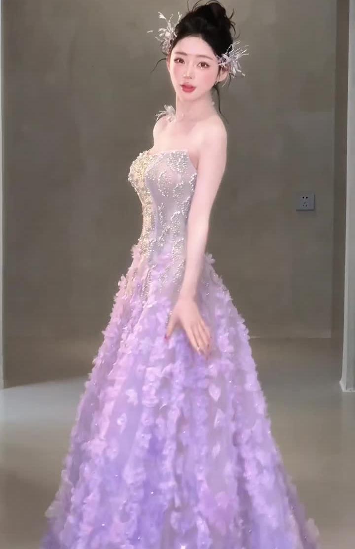 【麥芽糖】紫色清新魚尾輕紗